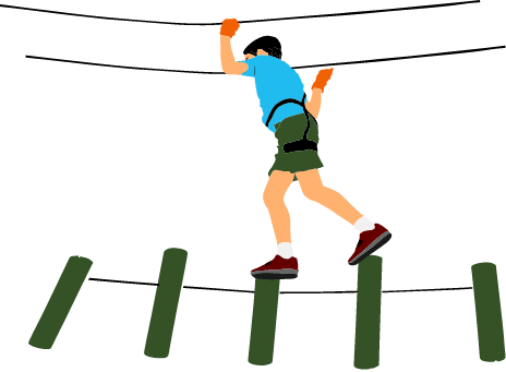 Our Adventurer course gives your children the opportunity to take part in a wide range of high-wire activities in perfect safety. There are more than 40 exercises in total, staged at different heights and levels of difficulty. This means that all kids can take part in the course, moving to the level that matches their ability and confidence.